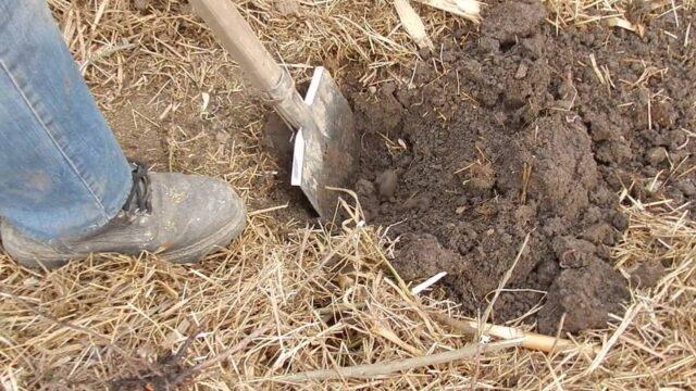 - Fúrjon egy 40 x 40 cm nagyságú lyukat, összpontosítva a gyökérzet térfogatára.