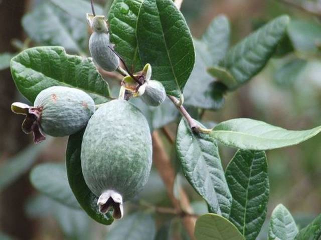 A Feijoa egy legfeljebb 4 m magas örökzöld cserje, amely Eurázsia déli régióiban, Észak- és Dél-Amerikában nő. A növényen hosszúkás alakú zöld gyümölcs érik. A gyümölcs átlagos hossza 4 cm, súlya 15 és 120 g között van.