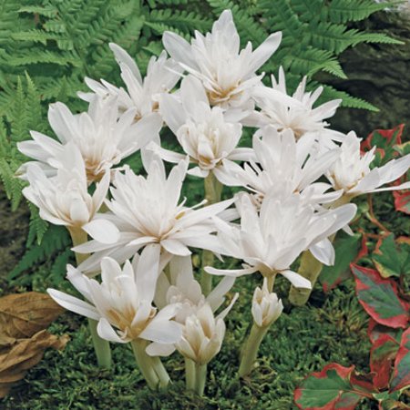 - Colchicum ősz (Alboplenum) megkülönböztethető fehér, nagy, legfeljebb 10 cm átmérőjű rügyekkel. Krémfehér színűek, sűrűn megduplázódtak.