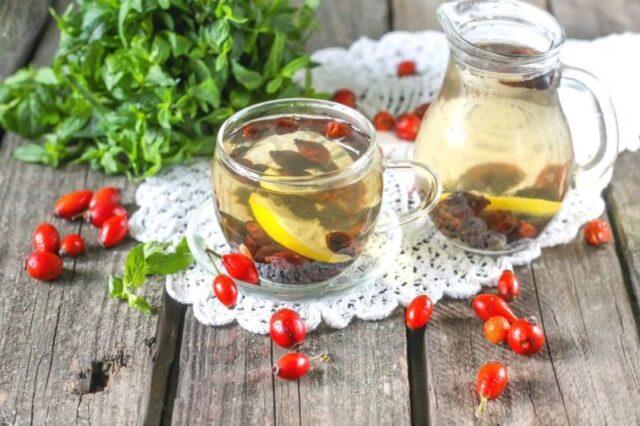 A csipkebogyót szépen lehet főzni, de gyakran összekeverik rendszeres zöld tea levelekkel. Ez az ital jó tonizáló tulajdonságokkal rendelkezik, javítja a hangulatot, lendületet ad.