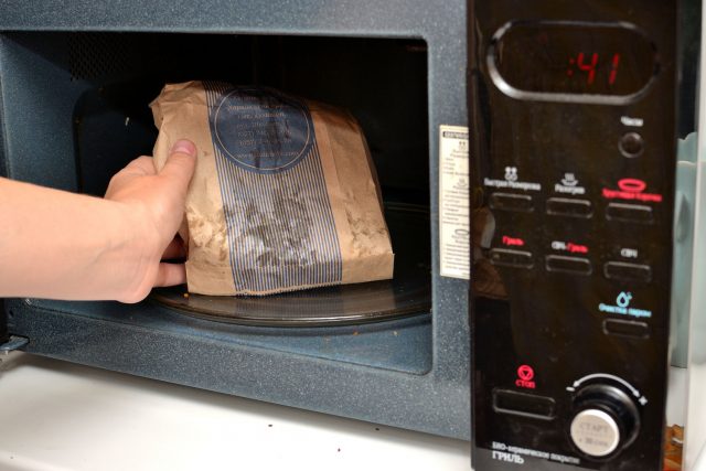 - Helyezze a táskát a mikrohullámú sütőbe, és állítsa az időzítőt 1 percre sütésre.