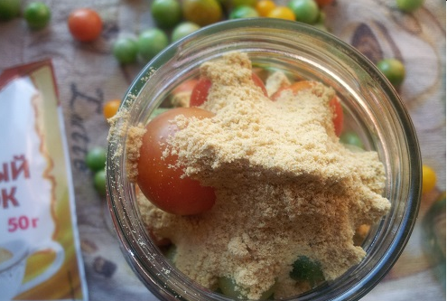 - Tegyen tiszta száraz paradicsomot egy sterilizált 3 literes edénybe, és öntsön 2-3 evőkanál. l. alkohol. Gyújtsa fel a folyadékot és tartsa fenn az edényt. Az ilyen tartály belsejében vákuum képződik, amely megakadályozza a baktériumok fejlődését.