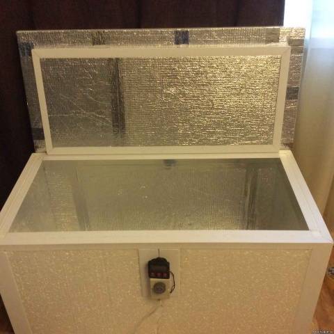 - Ezenkívül a pozitív hőmérséklet fenntartása érdekében az erkélyen lévő doboz belsejében izzólámpát helyeznek el.