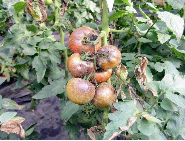 A késői vagy késői gyulladás a paradicsom és az éjjeli madárfélék családjába tartozó egyéb növények, beleértve a burgonyát is. A késői gyulladást patogén gombák okozzák. A legyengült növények általában elsőként betegednek meg. A szárakon és a leveleken megjelennek barnásbarna foltok... Ha alaposan megnézi, a lap másik oldalán finom fehér pihe látható. Ezek olyan állatkertek, amelyek könnyen átvihetők növényről növényre. Párás környezetben a betegség kórokozójának spórái jelennek meg belőlük, amelyek a sztómákon keresztül jutnak be a növénybe, vagy közvetlenül a felső szövetrétegen keresztül csíráznak.