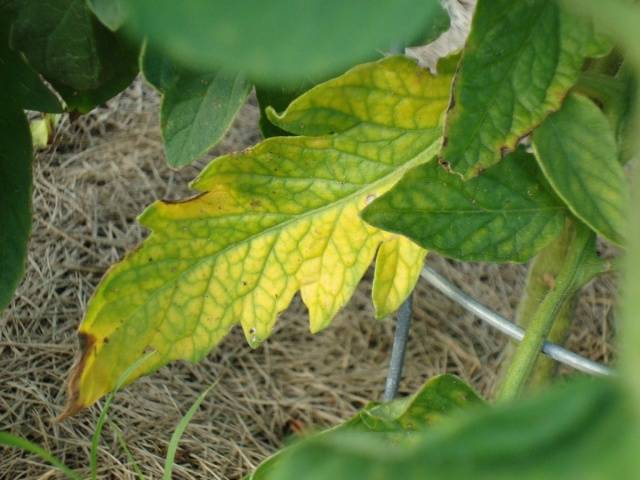 A levelek megsárgulhatnak a nitrogén hiánya vagy feleslege miatt. A paradicsom táplálékának kiegyensúlyozottnak kell lennie, nitrogénre van szüksége a növénynek a fejlődés minden szakaszában - ez a fehérjék és a klorofill része. Érdekes módon a nitrogén nagyon mozgékony, a növény önállóan juttatja oda, ahol a legnagyobb szükség van rá: például a régi levelektől a fiatalokig. Így nitrogén éhezés során az alsó levelek először megsárgulnak.