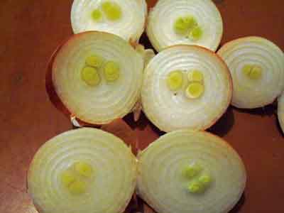 A legjobb, ha körülbelül azonos méretű izzókat tart a fiókban. Ebben az esetben a csírázás egységesebb lesz. A folyamat felgyorsítása, valamint a toll szebb és egyenletesebb csírázása érdekében az egyes hagymák nyakát levágják, és magának a hagymának kb.