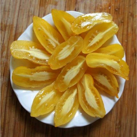És nagyon szeretem ezeket a paradicsomokat. A cikk tartalmaz egy fényképet, ahol a gyümölcsöket tányérra vágják. Belső részük átlátszó, majd nagyon finom lesz. Tehát ne rohanjon kitépni őket az éppen sárga bokorról, várja meg, amíg narancssárga színűvé válik.És akkor meg fogja érteni, hogy a paradicsom nagyon finom.