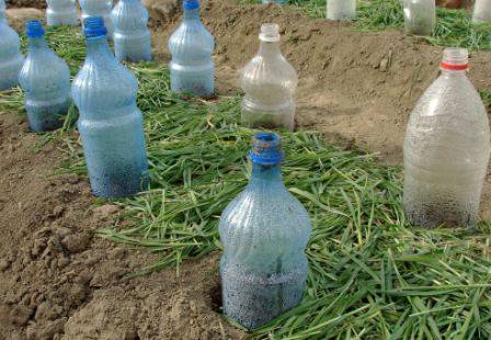 - takarjon be minden kört egy kivágott palackkal, enyhén nyomja be a talajba. Ne csavarja le a palack kupakját.