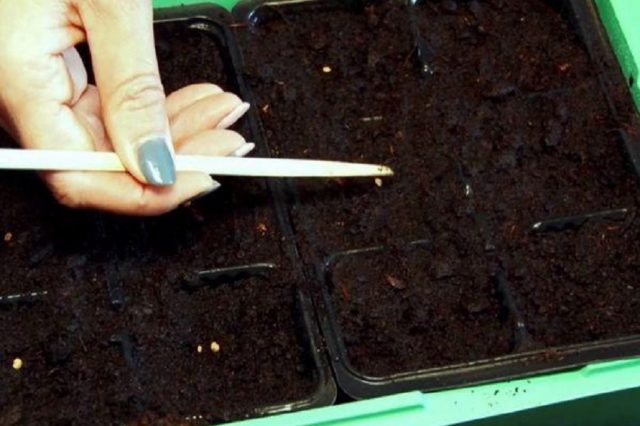 - Óvatosan helyezze a magokat a talajkeverék felületére, fedje le a tetejét 1 cm vastag réteggel.