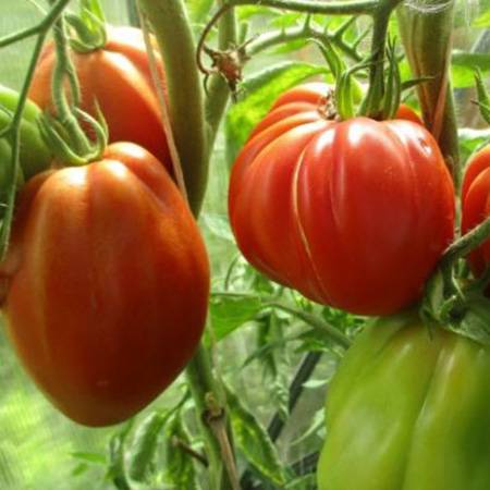 A gyümölcs nagy méretű - átlagosan súlyuk 250-300 gramm, de vannak olyan példányok, amelyek súlya eléri a 700-800 grammot. Mint gyakran előfordul, a bokor első gyümölcsei a legnagyobb méretűek, majd fokozatosan a paradicsom kisebb lesz.