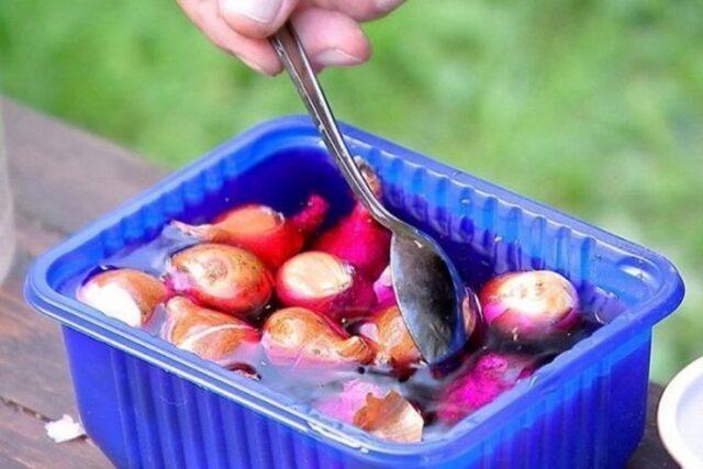 Hogyan kell áztatni és mennyit kell tartani a hagymakészleteket kálium-permanganátban
