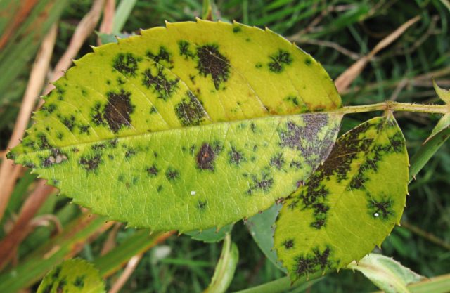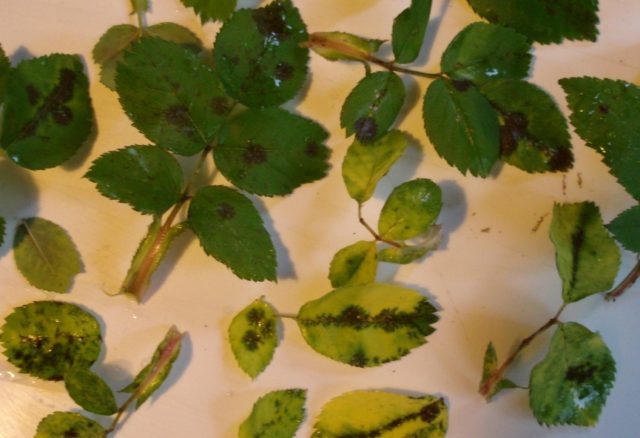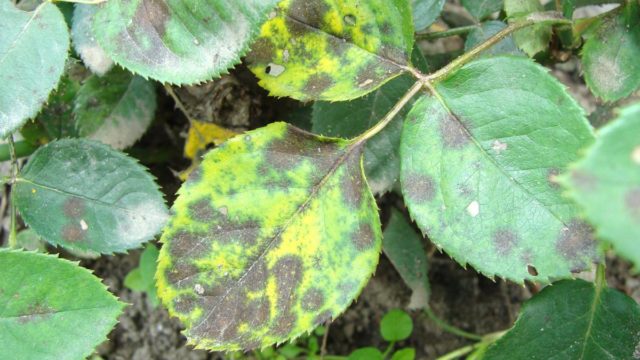 Ha a rózsa levelei megsárgulnak, fekete foltok borítják, akkor vegyszerekkel kell kezelni, amelyek mancebebet és cinket tartalmaznak. A leghatékonyabbak közülük: