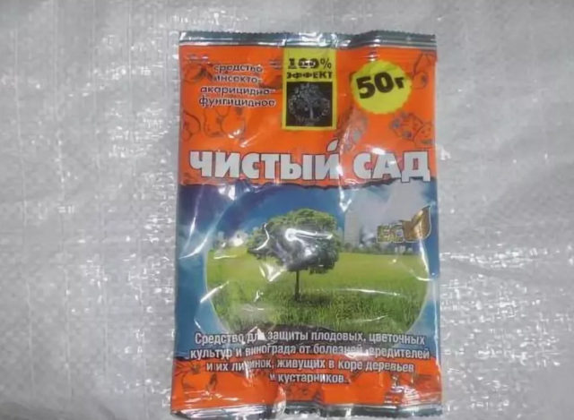 A fák időben történő permetezése a fenékkel segít a göndörség, a foltosodás, a clasterosporium betegség, a coccomycosis, a moniliosis és a varasodás okozóinak elpusztításában. A fungicid oldat fogyasztási aránya 10-15 liter / 100 négyzetméter. m. ültetvények.