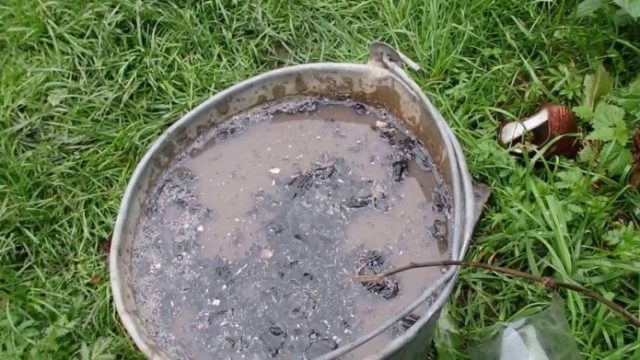 A kompozíciót 1 órán át fedő alatt forraljuk. Ragaszkodjon 2 napig, szűrje le. A permetezéshez hígítsa vízzel 1:10 arányban.