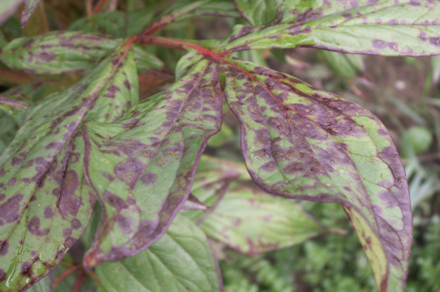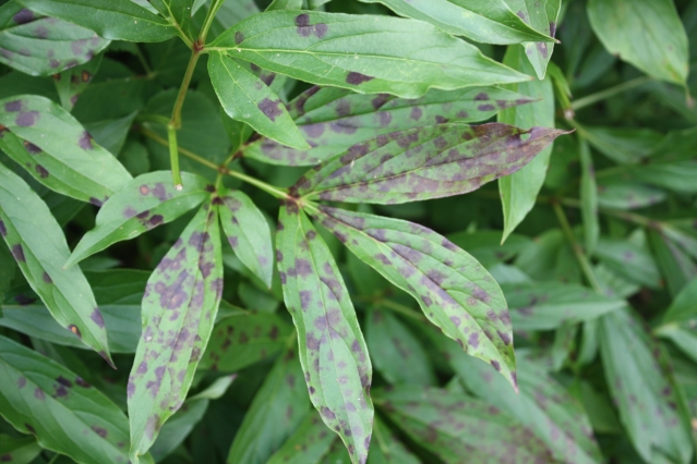 A gombabetegségek a bazsarózsa bokrokban alakulnak ki leggyakrabban a nem megfelelő ellátás hátterében. Ennek oka lehet a talaj folyamatos vízfolyása, különösen az esős időjárás hátterében. A gombák gyakran kora tavasszal jelennek meg, ha a kertet ősszel nem tisztították meg, a kórokozó spórák kivárják a hideget a növényi törmelék alatt.