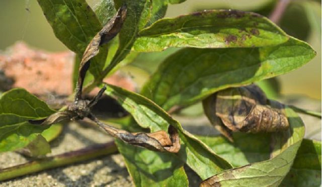 - fekete pontok és barna foltok jelentek meg a növény levelein;