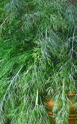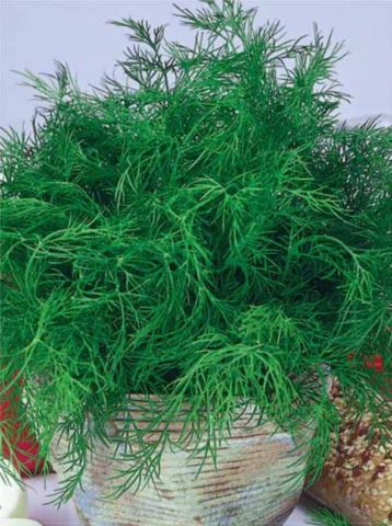 Dill Smaragd... A fajta minden rozettájában legfeljebb 12 élénkzöld illatos levél képződik, legfeljebb 23 cm hosszú, legfeljebb 17 cm széles. A zöldségkultúra rozettájának magassága legfeljebb 30 cm, a bokor körülbelül 21 cm átmérőjű. Legfeljebb 40 g smaragdzöldet szednek le egy növényből, 1 négyzetméterből. m - körülbelül 2 kg. A tenyészidő rövid - csak 28-33 nap.