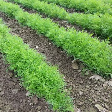A késői kultúrfajták zöld tömegének érése a csírázás pillanatától számított 57-70 napon belül megkezdődik. Minden bokoron legfeljebb 10 hosszú, bolyhos levél képződik. Virágzás és az esernyők kialakulása még később.