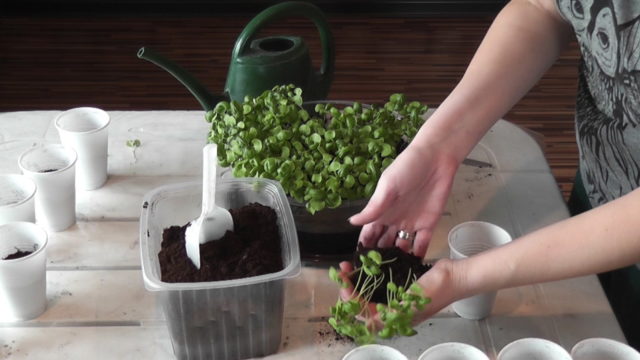 Az ültetéshez bármilyen edényt használhat, azonban sekély edényekbe ültetve a palántáknak akkor merülniük kell, ami nem kívánatos. Ezért a bazsalikom termesztéséhez egy ablakpárkányon célszerűbb azonnal nagy edényeket használni, például nagy virágcserepeket vagy műanyag edényeket. Ez megment a jövőben felesleges munkától, a növényeket pedig a stressztől.