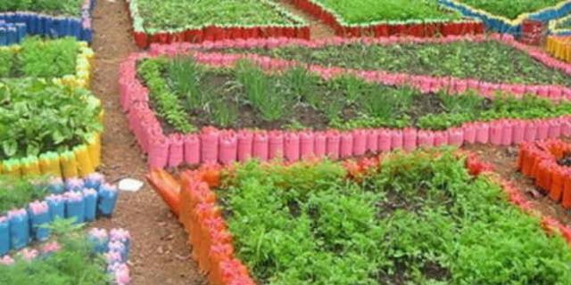 Ami nem műanyag palackokból készül, és ez alól az ágyak kerítése sem kivétel. Ez egy valódi praktikus anyag, amely ingyen megtalálható egy hulladéklerakóban, vagy bármelyik bárban koldulhat. Kerítés készítéséhez homokot vagy földet öntenek az üvegek belsejébe, majd nyakkal beásták őket az ágy körül. Természetesen a dugók meghúzódnak. A szegély dekoratív jellegét többszínű palackok segítségével érik el, vagy kevés festéket öntenek egy átlátszó edénybe és rázzák fel. Nem tanácsos üres palackokba csöpögtetni. A hőmérséklet változásától kezdve a falak zsugorodni és kiegyenesedni kezdenek, ami kellemetlen ropogást okoz az udvaron.