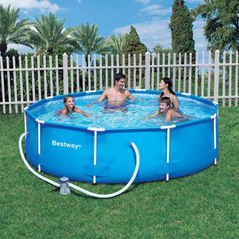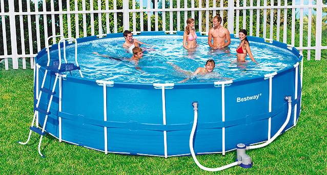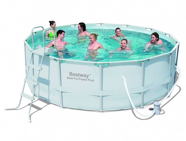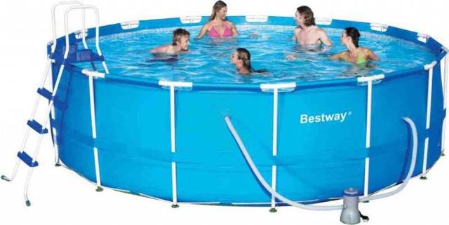 Az ország kikapcsolódására a Bestway kerek medencét szánják, ahol acélkeretet használnak támaszként. A fémszerkezet vékony falú csőből készül, amely lehetővé tette a súly csökkentését szilárdság feláldozása nélkül. A tál kerete támasztékból és az oldal felső szegélyéből áll. A merev alap lehetővé teszi, hogy nekidőljön a létrának, letegye az asztalt és egyszerűen hajoljon úszás közben.