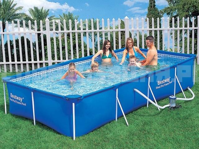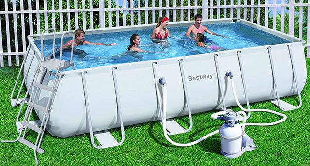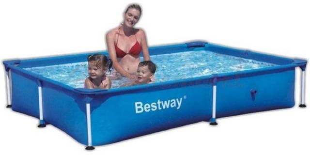 A téglalap alakú Bestway keretes medencék jellemzője a tál nagy mérete. A pezsgőfürdő alapja acélváz, amely megerősített tartóoszlopokból és felső szegélyből áll. A tál 0,9 mm vastag, háromrétegű megerősített PVC anyagból készül.A medence minden elemének ereje elegendő ahhoz, hogy ellenálljon az úszó súlyának és a víz nyomásának.