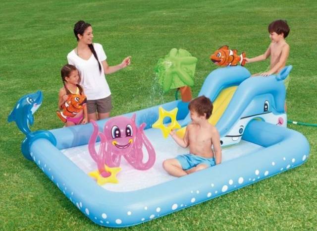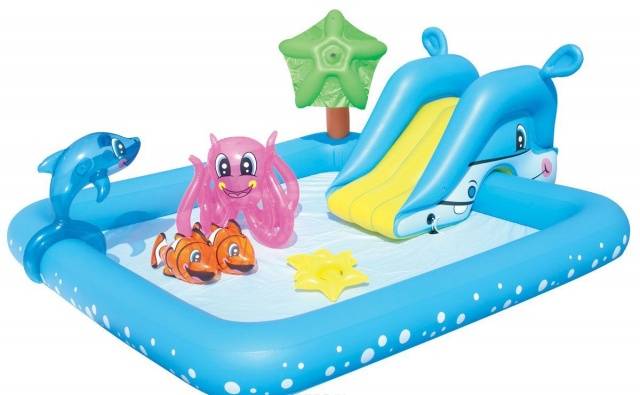 A legjobb ajándék a legkisebb gyermekek számára nyárra egy medence lesz, játékkomplexum formájában. A felfújható tálak különféle látnivalókkal készülnek. A gyártó gondoskodott egy vízi csúszda rögzítéséről a felfújható deszkán. A modelltől függően a pezsgőfürdő állataival vagy a mélytengeri lakókkal van felszerelve.