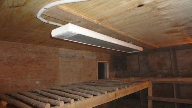 Infravörös melegítők használatakor éppen ellenkezőleg, több rést kell készíteni a tyúkólban. Friss levegő áramlik át rajtuk. A csirkék hideg alvásának megakadályozása érdekében a sügéreket legalább 60 cm-rel megemelik a padlóról.