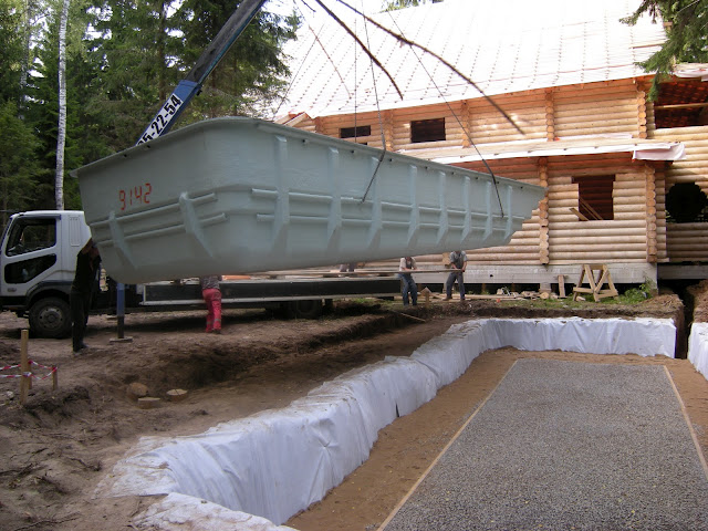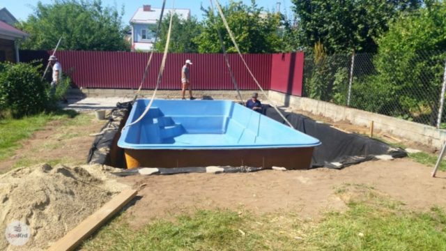- a tok elhelyezése a telepítés helyén improvizált eszközökkel vagy speciális felszereléssel;Fontos! A kompozit anyagokból készült medencék a tartály kerülete körül fémből vagy fából készült alapra szerelhetők.