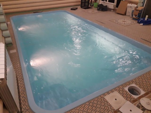 Az összetett medence lakáson belüli telepítésének számos jellemzője van, beleértve a szakaszok használatát, a méretnek meg kell felelnie az ajtó szélességének. A szerkezet beépítése a fent leírt technológia szerint történhet az épület építése során vagy annak befejezése után.