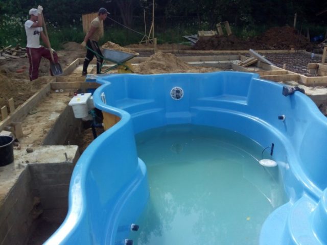 - A polipropilénből készült medencék kötelező betonozást igényelnek, amelynek során a munka sebességét korlátozza az a lehetőség, hogy naponta csak 20-30 cm betont raknak.
