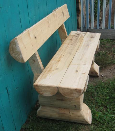 A valóságban és a fotón a lekerekített rönkből készült padok szép kivitelnek tűnnek. Az összeszerelést apróra vágott bútorok gyártásának módszerével hajtják végre. A kalibrált rönk jól illeszkedik a rúdhoz. Kényelmesen használható a tartóelemek közötti hosszanti bordákhoz, valamint a háttámlaoszlopokhoz.