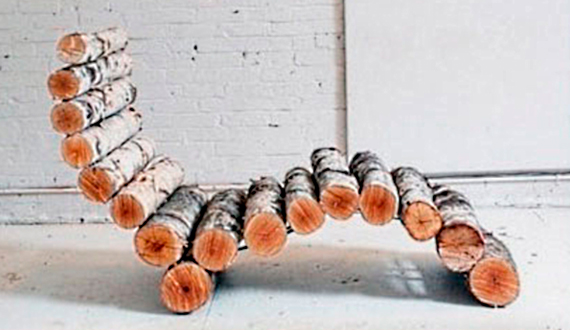 Az eredeti széket, amely egy nyugágyra emlékeztet, nyírfa rönkök maradványaiból készítik. 15-50 darab azonos hosszúságú darabra lesz szüksége. Az összeg a pad méretétől és a rönkök átmérőjétől függ. Optimális kerek fát választani 15-20 cm vastagságú.A szék alapja vastag fémlemez. Ez egy görbét kap, amely az ülést és a háttámlát képezi.