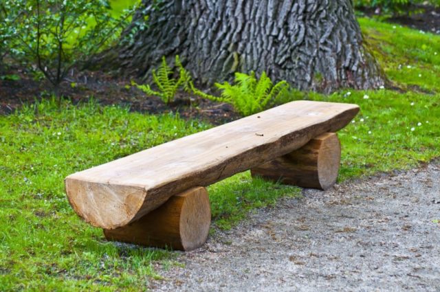 - A klasszikus, háttámla nélküli pad egy hosszú ülés, amelyet mellette fűrészelt rönk alkot. A támaszték két tuskó, nagy kövek, hamvas tömbök vagy kerek fadarabok. 1-2 órán belül elkészül egy ilyen szerkezet saját kezűleg. A padot nem hosszú távú ülésre tervezték, mivel a háttámla és a kartámasz hiánya befolyásolja a hát fáradtságát. A szerkezetet egy rövid szünetre a kertbe telepítik.
