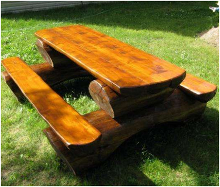 Rönkből készült barkácspad könnyen beszerezhető, ha puha fát használ. Az ilyen fa azonban gyorsabban eltűnik a csapadéktól és a naptól. Ha a bútorok egész évben a szabadban fognak állni, akkor jobb erőfeszítéseket tenni a tölgy, a bükk vagy más kemény fajok feldolgozásával.