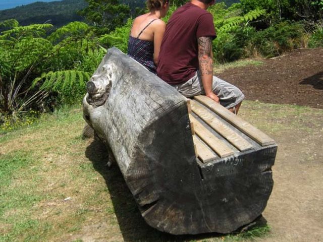 - Ha jártas a motorfűrésszel való munkavégzéshez, akkor az eredeti padot saját kezével kivágja egy vastag rönkből. Itt nincs szükség lábakra. Kerek faanyaghoz válassza az átmérő egynegyedét a munkadarab mentén. Ahhoz, hogy kényelmesen leülhessen egy ilyen padra, meg kell találnia egy nagyon nagy fa törzsét, amelynek minimális vastagsága 70-80 cm.
