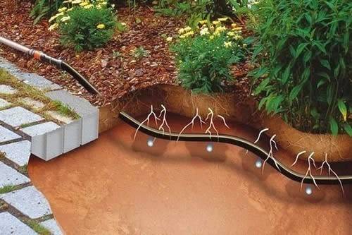 Az altalaj öntözése magában foglalja a víz közvetlen ellátását a növény gyökerébe. Ha felületi csepegtető öntözéssel nedves folt képződik a növény körül, akkor az intrasoil módszerrel az egész kerti ágy felülről száraz. Ez a nagy plusz kiküszöböli a kéreg kialakulását a talajon, amelyet folyamatosan lazítani kell.