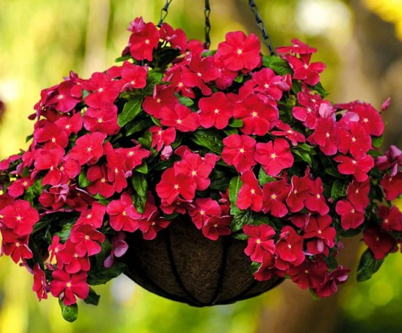 Nyáron a periwinkle edényt egy ültetvénybe lehet helyezni, és kifelé felakaszthatjuk