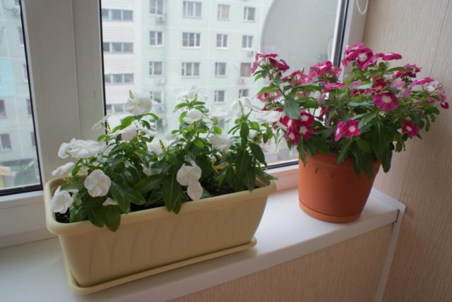 A szoba periwinkle meglehetősen kompakt, ezért keskeny ablakpárkányokra vagy polcokra is elfér.