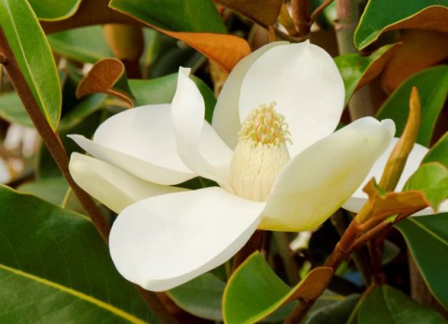 A magnólia örökzöld (lombhullató) növény. A virágok nagyon illatos fehérek, rózsaszínűek vagy krémszínűek, nagy levelekkel. A virág mérgező növényekhez tartozik, de rengeteg hasznos anyagot tartalmaz: illóolajokat, flavon-glikozidokat, rutint és alkaloidokat. A magnólia virágának otthoni termesztése az utóbbi években egyre népszerűbb. Vannak olyan dekoratív fajok, amelyeket kifejezetten otthoni termesztésre tenyésztettek.