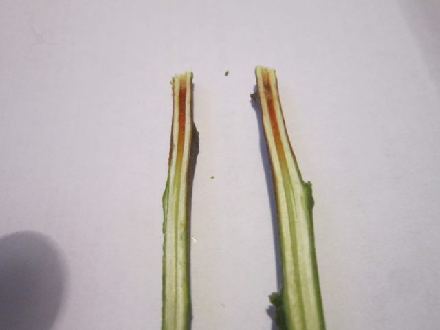 Gombás fertőzés esetén a kezdeti szakaszban a sárga vénák megjelenése a leveleken jellemző. A nem ligifikált hajtások elsorvadnak, a növény fokozatosan kiszárad. A citrom beteg szárán a gomba piknídiumai jelennek meg, szinte láthatatlanok az emberi szem számára.