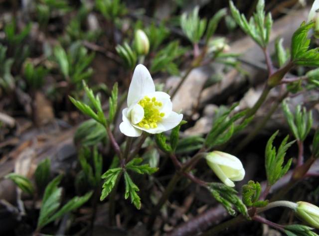 A kökörcsin az erdei szőnyegen más lágyszárú évelők között látható filigrán, háromszor boncolt leveleivel, amelyek hatalmas, élénken telített zöld csomókat alkotnak. A kocsányok egyenként távoznak a rizómától, a csészelevél hiányzik, így a virág mind a 6-8 szirma a legkisebb széllélegzésre is könnyedén alkalmazható. Ezért a növény közönséges neve - kökörcsin. Fehér, lila vagy világos rózsaszínű, legfeljebb 2-3 cm átmérőjű, egyedülálló virágai kecsesen táncolnak, mint a kecses erdei balerinák, eksztatikusan énekelve a tavaszi himnuszt a még mindig csendes, ébredő áprilisi erdőben. A tölgyfa szellőrózsa virágzása május közepéig folytatódik.