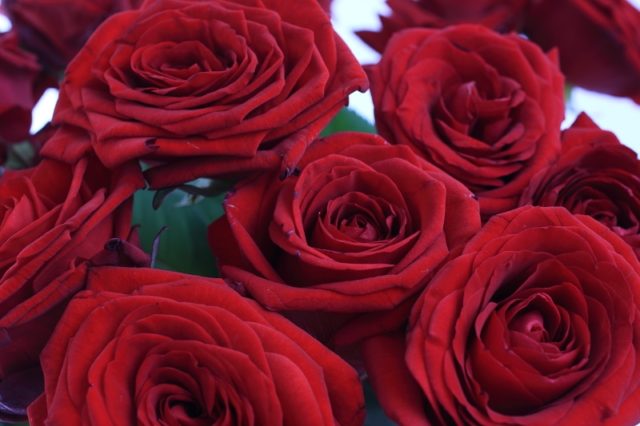 A nagy virágú rózsa A vörös Naomi a vágás után körülbelül 10 napig képes csokorban állni