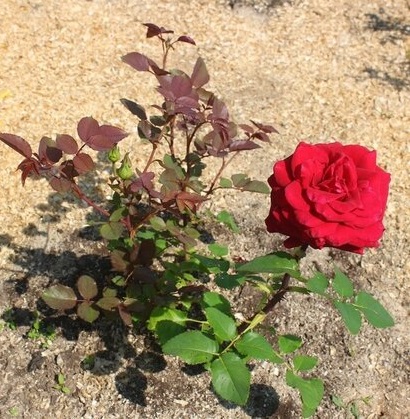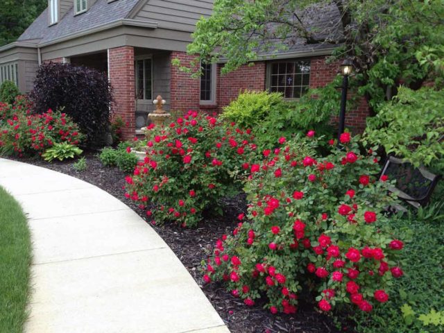 - Vörös rózsa A vörös Naomi ültethető egyenként vagy kis csoportokban. Ebben az esetben a bokrok közötti távolságnak legalább 60 cm-nek kell lennie.