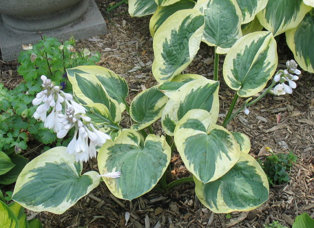 A gazda sokféle kerti virággal párosítható. Az ültetés során csak a bokrok elterjedését kell figyelembe venni. A „karácsonyfa” felnövekedése elzárhatja szomszédait a napfénytől. A hosta jól mutat a magas növények hátterében: pünkösdi rózsa, kardvirág, páfrány, hibiszkusz és arab. Könnyű árnyékolást hoznak létre a gazda számára, amely megvédi lombját a leégéstől.