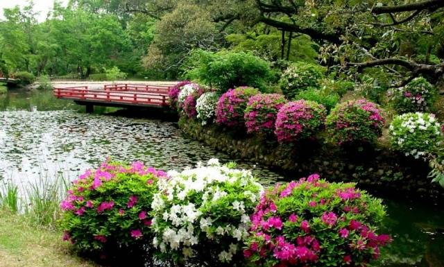 A virágzó cserjéket egy bizonyos időben sok szép és illatos virág borítja, ami még látványosabbnak is tűnik, mint a buja növényzet.