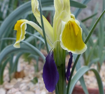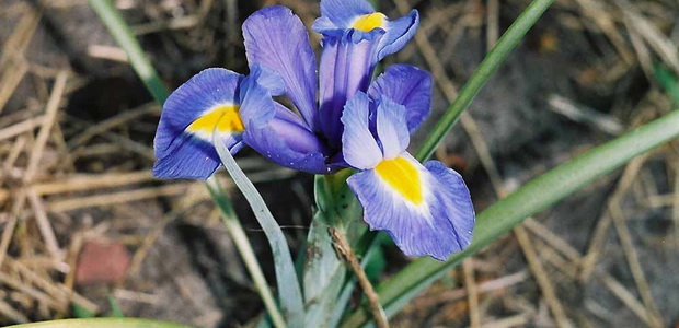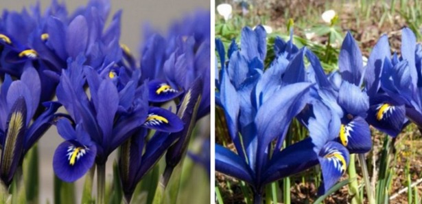 A hagymás írisz (a képen) kék (5-6 cm átmérőjű) apró virágokat eredményez.