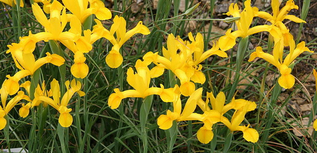 Több egymás mellé ültetett írisz gyönyörű virágszőnyeget alkot