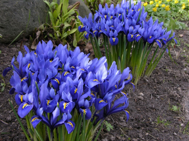 - Virágzási időszak - szinte az összes hagymás írisz kankalin, ezért célszerű őket hóvirágokkal, krókuszokkal, jácintokkal, erantisokkal, nárciszokkal, tulipánokkal és másokkal kombinálni.