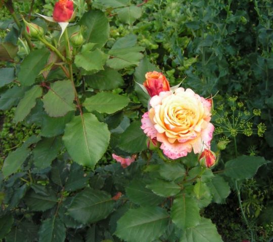 A rózsákat az astilbe, a kardvirág, a phlox és a geyher kombinálhatja a legjobban. Ritkábban kombinálva a csipkebogyó és a magnóliák dekoratív fajtáival.
